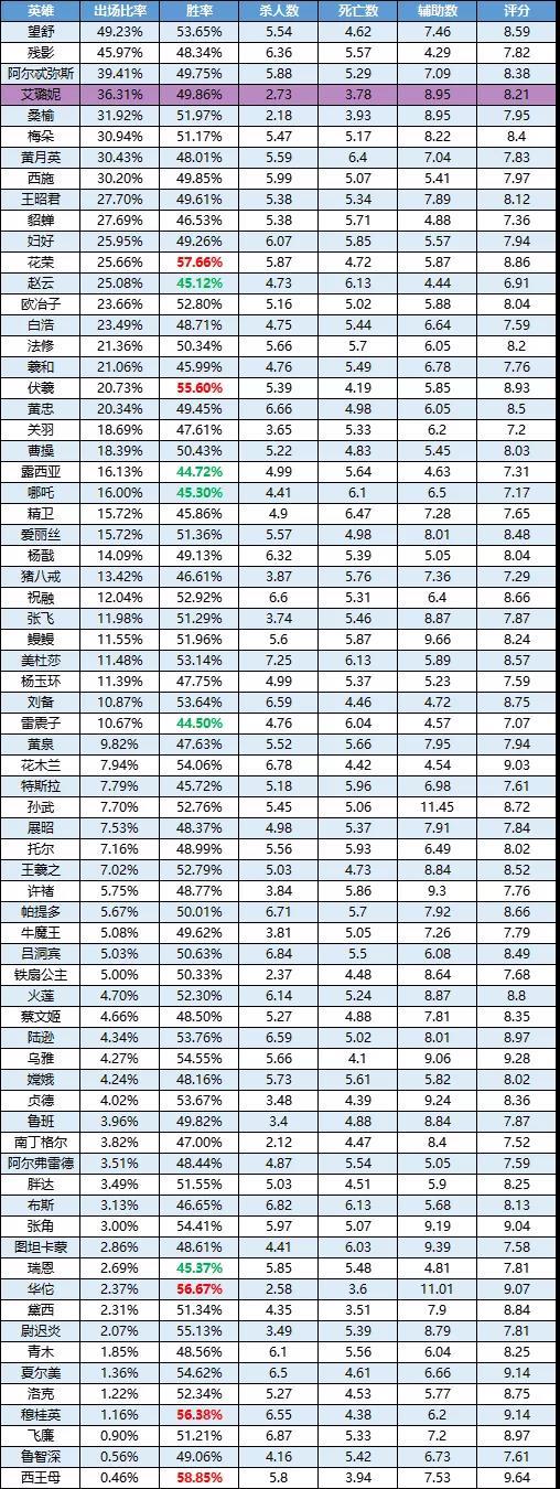 一周英雄榜单丨艾璐妮上线就成人气王!花荣重做后成射手一哥!