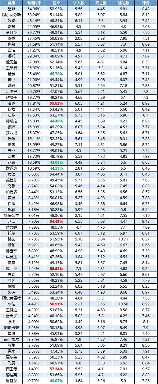 一周英雄榜单 |露西亚登陆两周领跑胜率榜!花荣胜率坐“过山车”