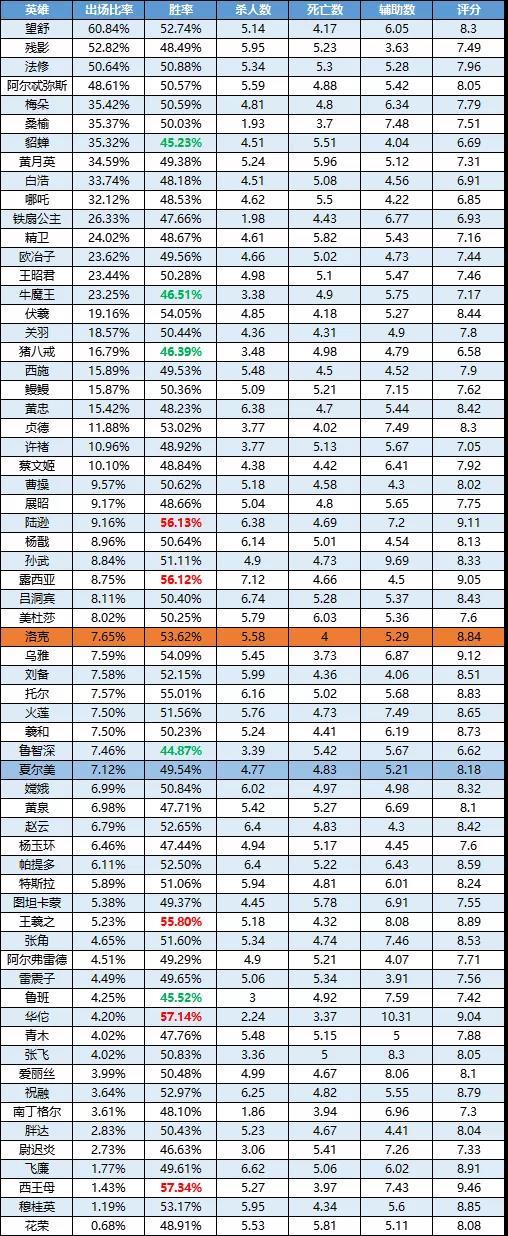 一周英雄榜单丨岚、班削弱后总体影响不大;洛克高分段逐渐起势;鲁智深加强后数据不理想