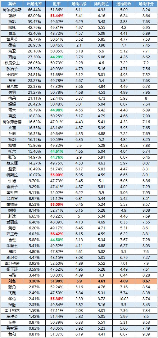 一周英雄榜单 | 刘备加强后胜率显著提升!新英雄蔡文姬表现中规中矩