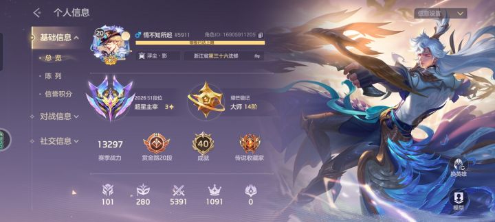这个号是我买的,自己单排从铂金5打了不到10天就打到主宰(以前有moba经验),打算深耕赏金路。我在南京上大学(浙江省是原号主的定位,重置定位加发新标要两周),平时一般下午或者晚上玩,需要能开麦,有素质的。有兴趣的可以在下面发下游戏信息,会玩中路和打野的也能来,我现在游戏0个好友,可以当我挚友一起玩,中野方便和赏金路联动,一起打标。最后,一定要能开麦的,这种游戏打字又慢又拖节奏,根本
