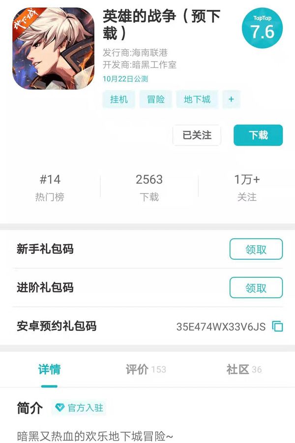 各位狂拽酷炫美若天仙英勇帅气的勇士大佬们~~~【10月22日】《英雄的战争》开启安卓全平台公测!我们不见不散!剑破黑暗,重返地下城!带上小伙伴一起,共赴一场畅爽刺激的地下城冒险~ 定好了公测日期,赛琳终于敢挺直腰杆站在大家面前了!<( ̄︶ ̄)>每天都被问的抬不起头,生怕放大家鸽子。弱弱的说一句...iOS渠道正在努力审核中,我们一定尽力赶上第一时间首发!为了感谢大伙儿的耐心等待热心支持,
