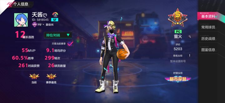 发现这游戏其实还有很多人理解不够,又没有比较会的视频或者帖子出来帮大家解答,虽然我不是顶尖的那一类玩家,但是对着游戏也有了基本的理解,关于官方不做事,所以我这里想为大家解答疑惑,所有位置我多多少少会一点(主控卫)有什么游戏打法,养成攻略,消费攻略,球星攻略大家不懂的都可以问,我也会帮忙解答;以下是现在其中一个号的照片:(本人早期大号被毁,该号淡游了1年左右,还有别的一些号加起来大概有六七千场吧)