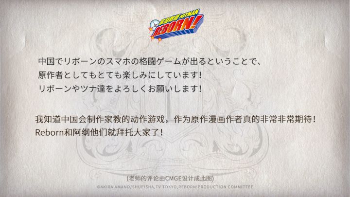 有人比我还无情,我就是无情的发奖人,云小逗,嘿嘿嘿25L:池苘就是你了,首领!云小逗QQ:3402584005,赶快来找我吧!!哈喽各位首领,今天云小逗有一份惊喜要带给大家:——《家庭教师》漫画作者天野明老师为家庭教师手游撰写的评论首曝光!(✪ω✪)以下为书评原文:中国でリボーンのスマホの格闘ゲームが出るということで、原作者としてもとても楽しみにしています!リボーンやツナ達をよろし