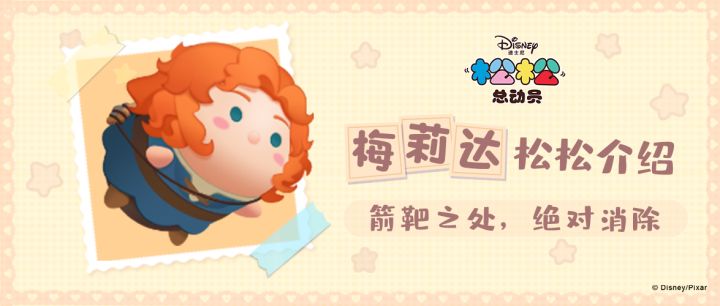 箭靶之处,绝对消除!狂野奔放的红发,勇敢而无畏的性格,这就是我们的梅莉达公主~今天,让我们一起来看看小小的她,究竟蕴藏着怎样的能量吧!【梅莉达技能介绍】梅莉达释放技能时,界面中将会出现三支弓箭,玩家可以对3只箭矢分别进行点击,箭矢经过的地方造成“|“形状范围的消除,靶子位置可消除全部松松和障碍。【60级技能效果】可消除松松约为:80释放需消除队长数量:15【梅莉达松松介绍】梅莉达