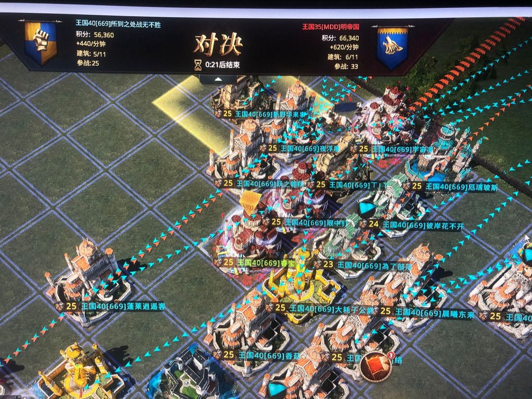 《权利的游戏》这款策略类的游戏相信许多热血少年们还是很喜欢的吧,激烈的战斗,战前巧妙的布局,都是赢得最后胜利的关键。 最好玩的还是龙狮之战模式,龙狮之战每周晚上7点半报名进场,8点正式开始。里面是不死兵的。每个领主出300万的士兵。 游戏的开始会双方阵营出现两个雷达,。开始要做的就是把己方舰队巧妙的分布在雷达盘上,每个建筑物的是20人上限,占领可得积分,分数上限20.占领的人数越多积分越高。 刚