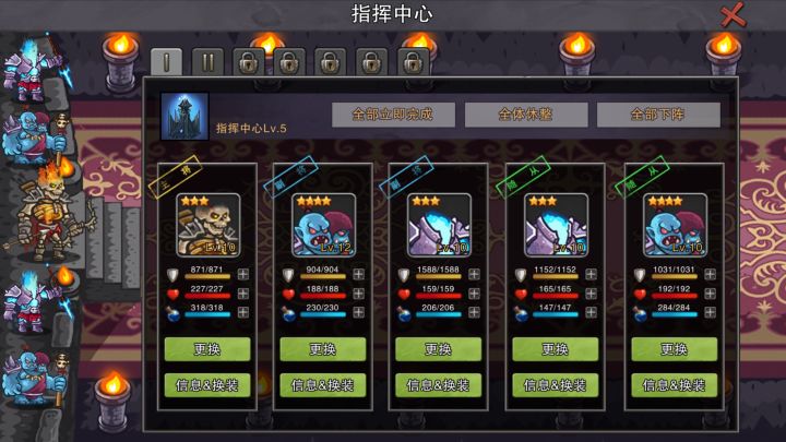 先上图,目前9级,2个4星英雄,这个游戏前期确实对新手不太友好,升级要的资源和产出不成正比,推荐新手可以刷一波广告来买资源升科技,刷个2,3星的英雄,开5个位置打,毕竟人多力量大。感觉装备比星级重要,毕竟加攻击多。10级基本横扫前3个洞穴副本。不过也没啥用,给些垃圾装备,算咯,当放置游戏慢慢玩,话说后期的宝石和精炼开没?
