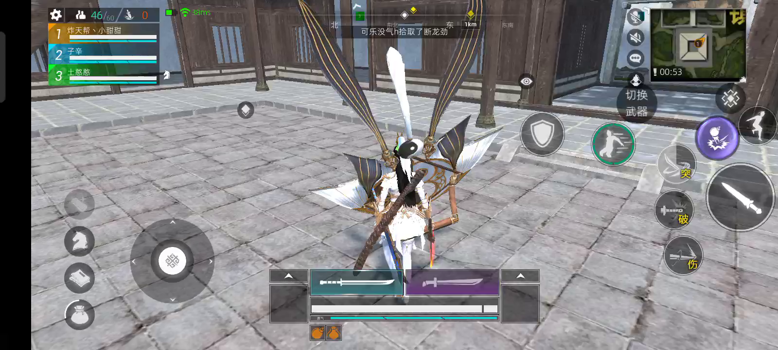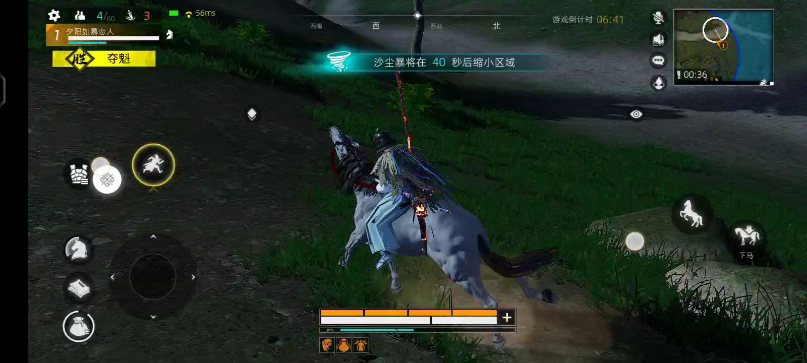 ld早上不想起,有一个跑掉了,本来我是一直追那个白色的笑问天到这里的,空投有个人在开,以为后面那个会打他,没想到两个人都站一起了还不打,我还骑马逛了几圈都没打起来,白色的开打了,我也开打,最看不惯这些非法组队的“人”了