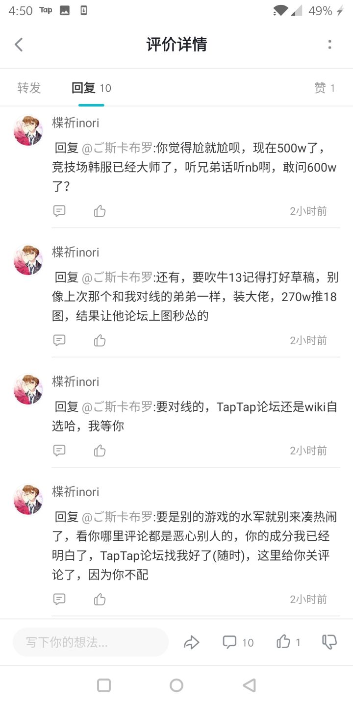 真•井底之蛙,我随便评论一句他就急了,你努力装逼维护自己大佬的样子真的可笑。。。。。。楪祈inori你要不加个eh游戏群吧,很多大佬还是需要你指点江山的