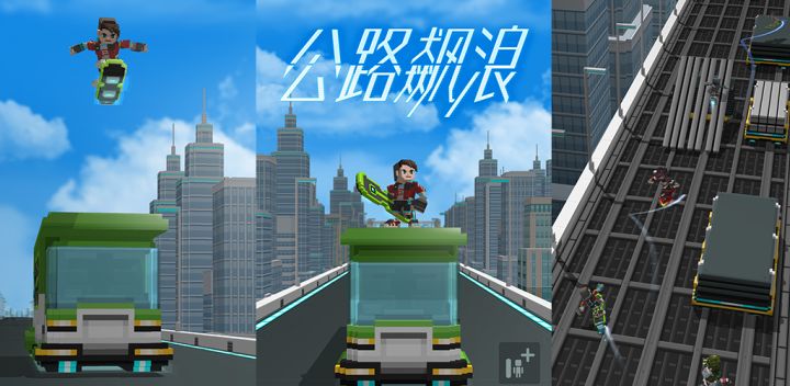 在公路上玩滑板简直就是玩命,不过《公路飙浪》至少可以让我们放肆一会:游戏每局只有60秒的时间,你将和NPC以及真人玩家在车水马龙中穿梭、跳跃,比拼名次,拿下高分。你可以收集路上的能量块来加速移动,但是一旦撞上车辆就会丢掉优势,时刻留意路况,随机应变才能甩开对手。游戏每天都会更新跑道和排行榜,你可以在不断挑战中发现最短路线,或者偷懒参考别人的路线。每次比赛后,游戏都会奖励一定的金币,供你解锁全新