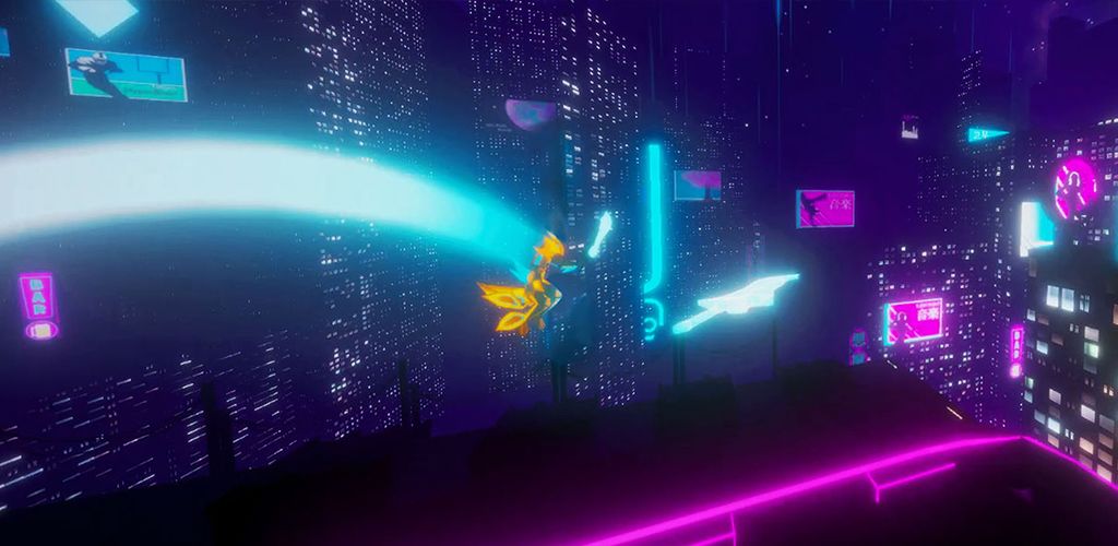 在赛博朋克城市穿行并滑动手指击败敌人。