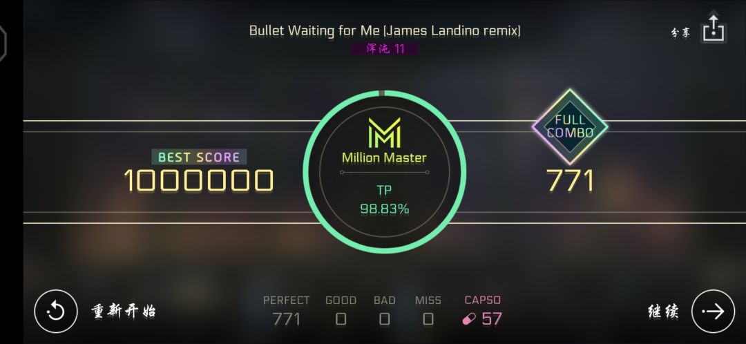 这个是真的打了很久。这应该是第四第五首混沌mm, 花了很多精力。打完过后回头想想,总结出了混沌谱对萌新的难点。 难点一:解谱 这曲前面比较轻松,然后打转高潮前的副歌开始,出现了两个节奏(左边歌词点,右边鼓点)。如果看不出来,那就是乱糊。杀手之一。 难点二:手癖 我不知道手癖确切来讲到底是什么概念,我的理解是两个手极度不协调,右手按下去左手也会跟着按下去,或者左手画锁链时右手就乱动什么的。如果这种理