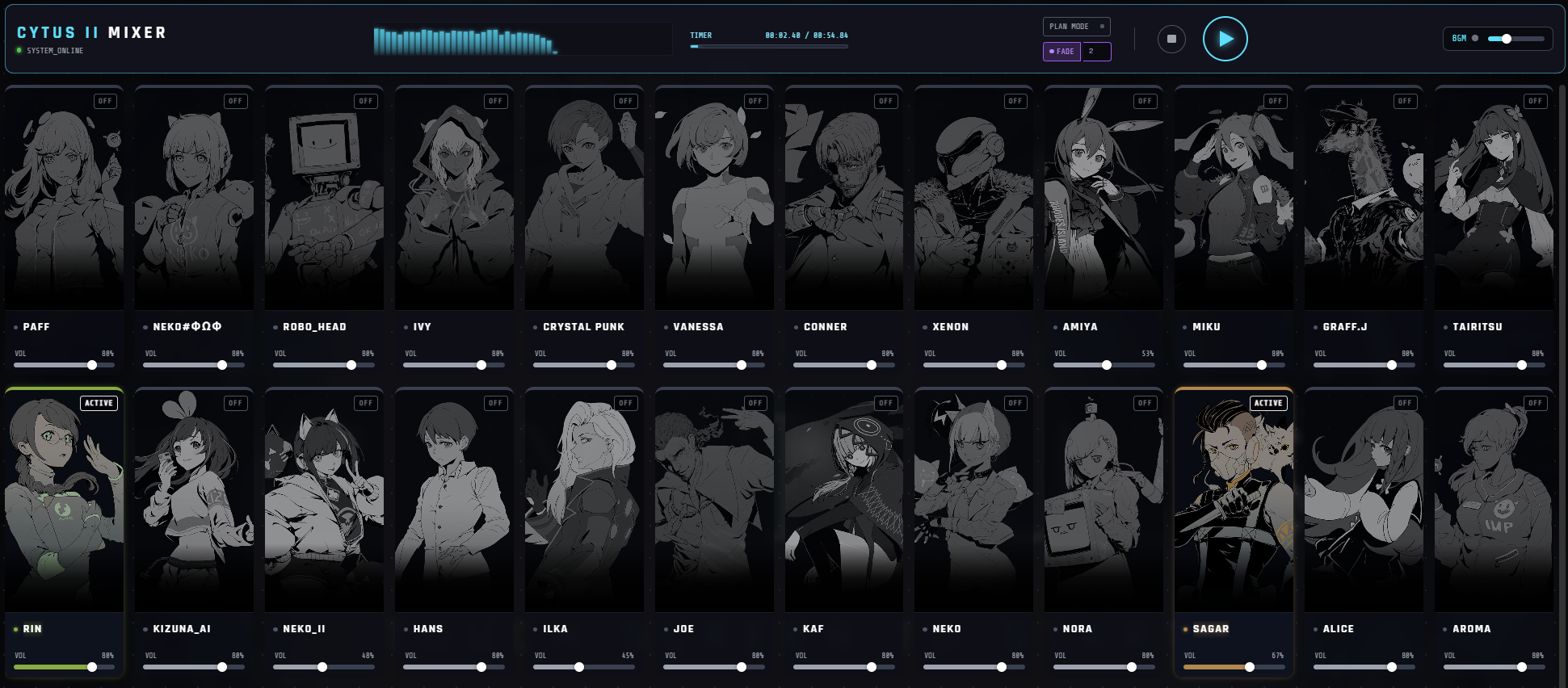 尝试AI写的Cytus 2 全角色主题曲混音游玩页