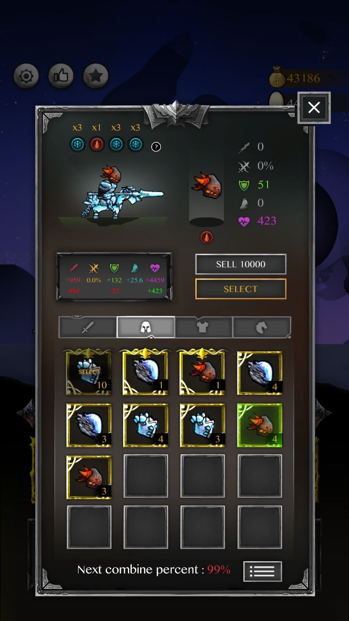 装备都是合成的,但是看见有人说可以花钱升级传说级装备,改天试一下,先睡了。