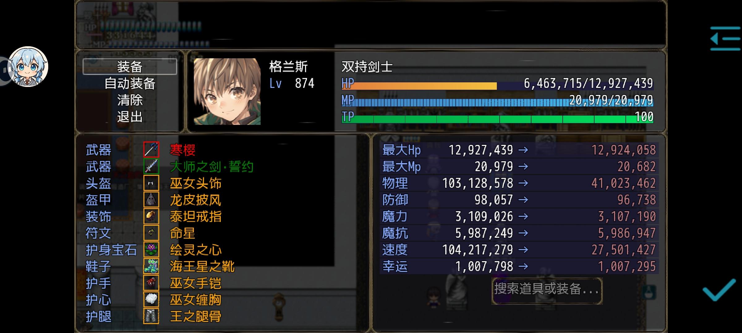 除了覡十、安洁 全身 全天赋打满 法攻强化宝石外,奈尔镶嵌几个深渊第十个房间爱丽丝通关宝石外,其他角色装备均未镶嵌宝石、也未打任何强化石。全员佩戴的“救世”称号,基础速度1个亿。