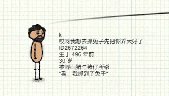 附一张图。这是我某一把的第一个孩子,当时想着把他养大了再去抓兔子,结果后来一直有孩子出生,我也就一直没能去抓。游戏结束了突然看到这个,真的鼻子发酸。