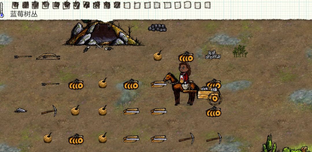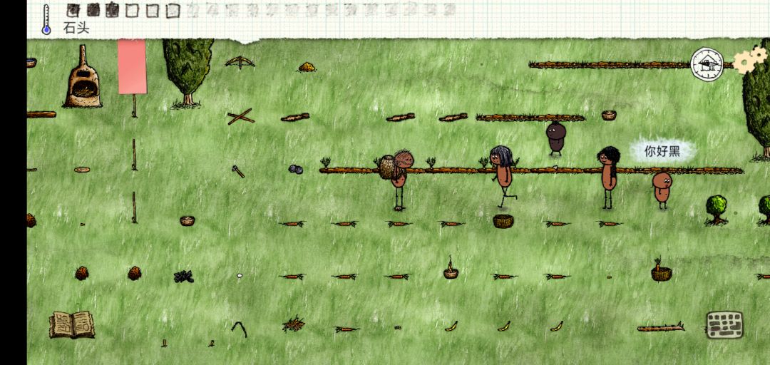 本篇为农耕时代的讲解,将教导你如何开垦、种植萝卜、醋栗、抓兔子、做针线、水袋和一些基础衣物。 目录: 其他攻略: 恭喜你学会生火!下面,让我们开始耕田吧。 在草地中找到肥沃土堆,用篮子捞一篮土,一个完整的肥沃土堆可以捞10次 然后↓划丢在家中,像这样多捞几篮土放家里,放在一个空旷的地方,作为未来的田区。 然后准备耕地工具,杆子可以直接耕地,虽然现在杆子的耐久有所增加,但还是不合适(除非你急的很或绳