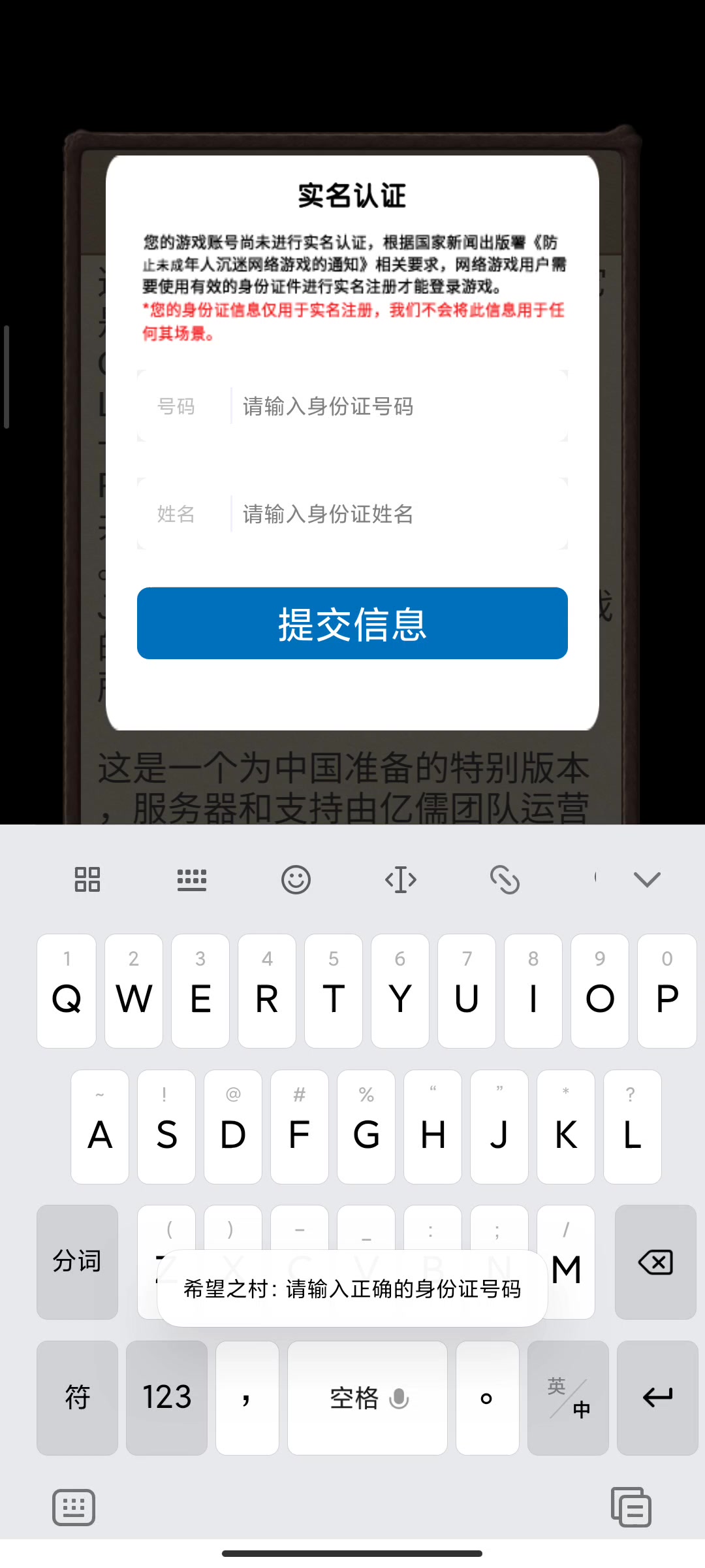 实名验证输不了名字