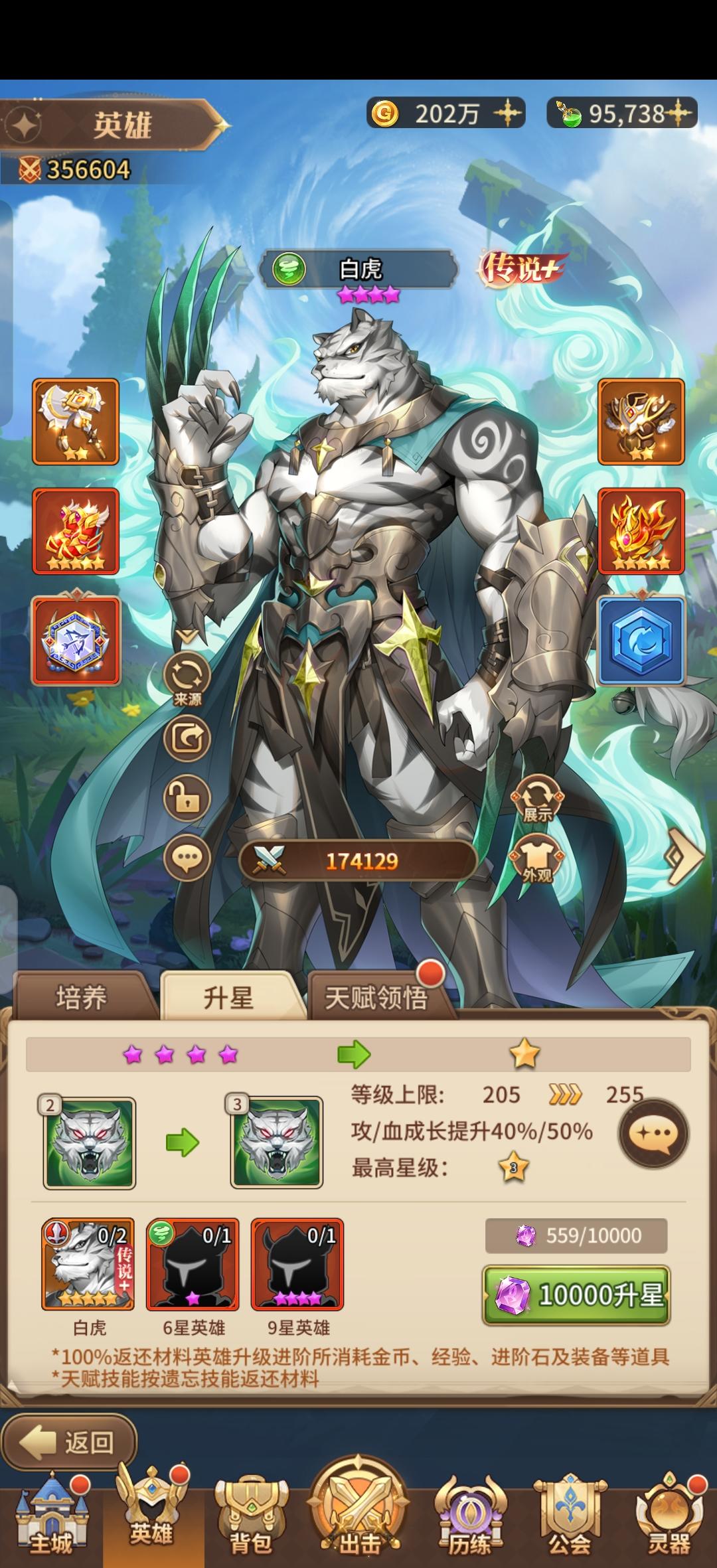 阵容如图,魔械师、sp白虎、sp熊猫、苏立耶、玄武,六人上冰雪女王抢速或者盘古、白泽、麒麟(能嫖到的话)。马上要出专服了,新手朋友们可以等专服重新玩个号,按照往期惯例,开服第八天会有松果活动,花5-6w钻石即可拿下一只sp虎,sp虎的强度在零氪微氪中氪里算很高的了,除了光法都能碰瓷一下。前期资源主堆老虎,竞技场积分可以攒着换老虎,后面换玄武、苏立耶,先知羽毛也是按照这个优先级,前期没有魔械、s