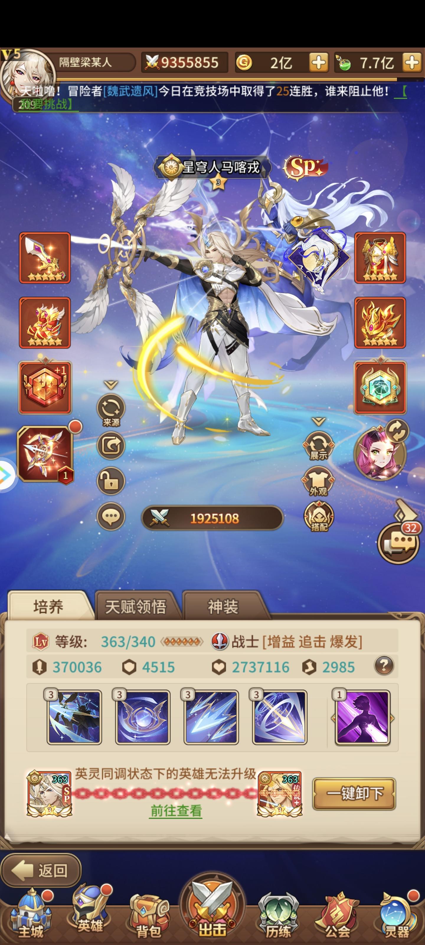 阵容如图,魔械师、sp白虎、sp熊猫、苏立耶、玄武,六人上冰雪女王抢速或者盘古、白泽、麒麟(能嫖到的话)。马上要出专服了,新手朋友们可以等专服重新玩个号,按照往期惯例,开服第八天会有松果活动,花5-6w钻石即可拿下一只sp虎,sp虎的强度在零氪微氪中氪里算很高的了,除了光法都能碰瓷一下。前期资源主堆老虎,竞技场积分可以攒着换老虎,后面换玄武、苏立耶,先知羽毛也是按照这个优先级,前期没有魔械、s