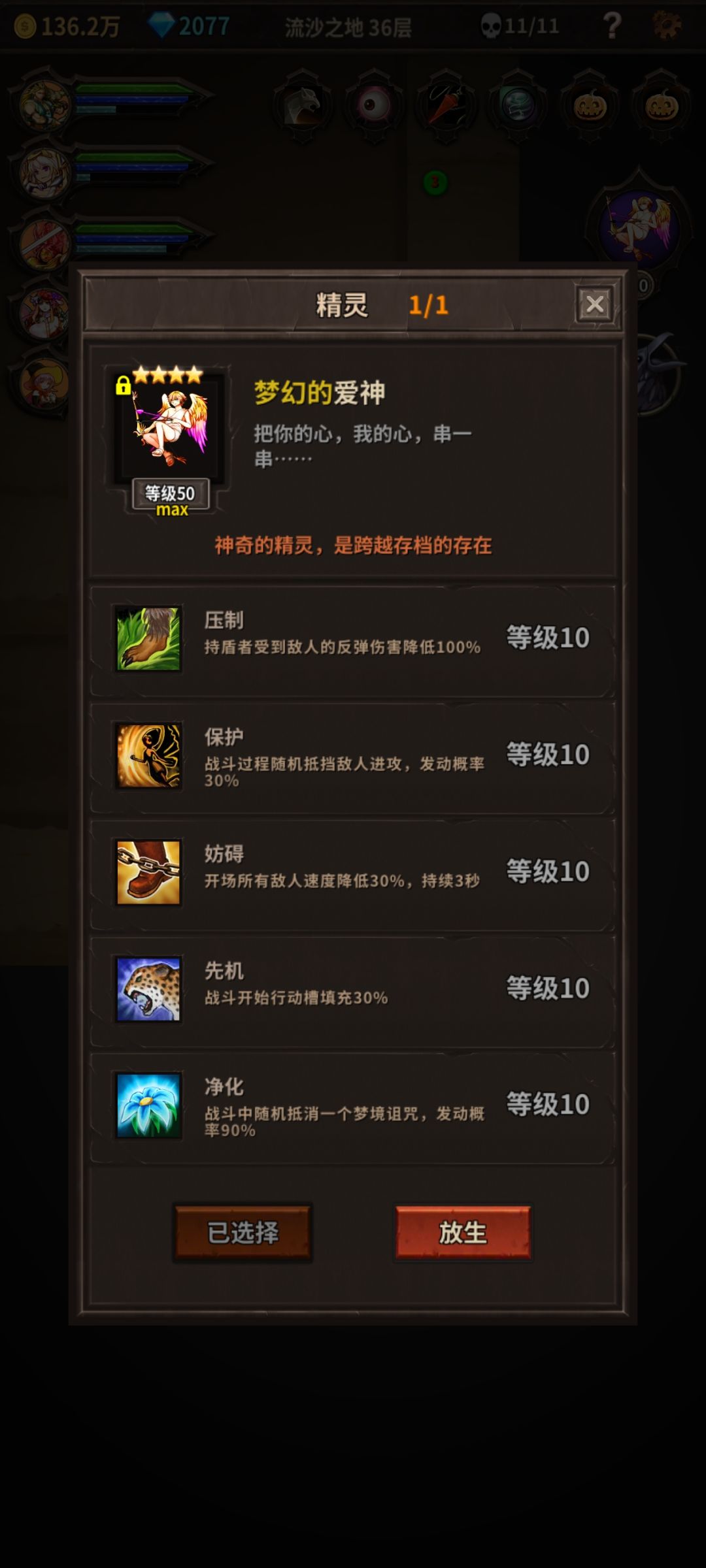 关于精灵技能的选择,周目选择技能,压制(防反伤),复活(概率复活,每次战斗生效一次),活力(概率回蓝5%),跳跃(规避陷阱伤害)妨碍(减速30%)先机(开局获得进度条300)觅食(概率获得面包) 梦境精灵技能选择,压制(防反伤),保护(概率免疫伤害),复活(概率复活,每次战斗生效一次),净化(概率消除一个debuff)妨碍(百分比减速,前中期先手神技,后期没用)。 后期梦境精灵选择技能,压制(防反