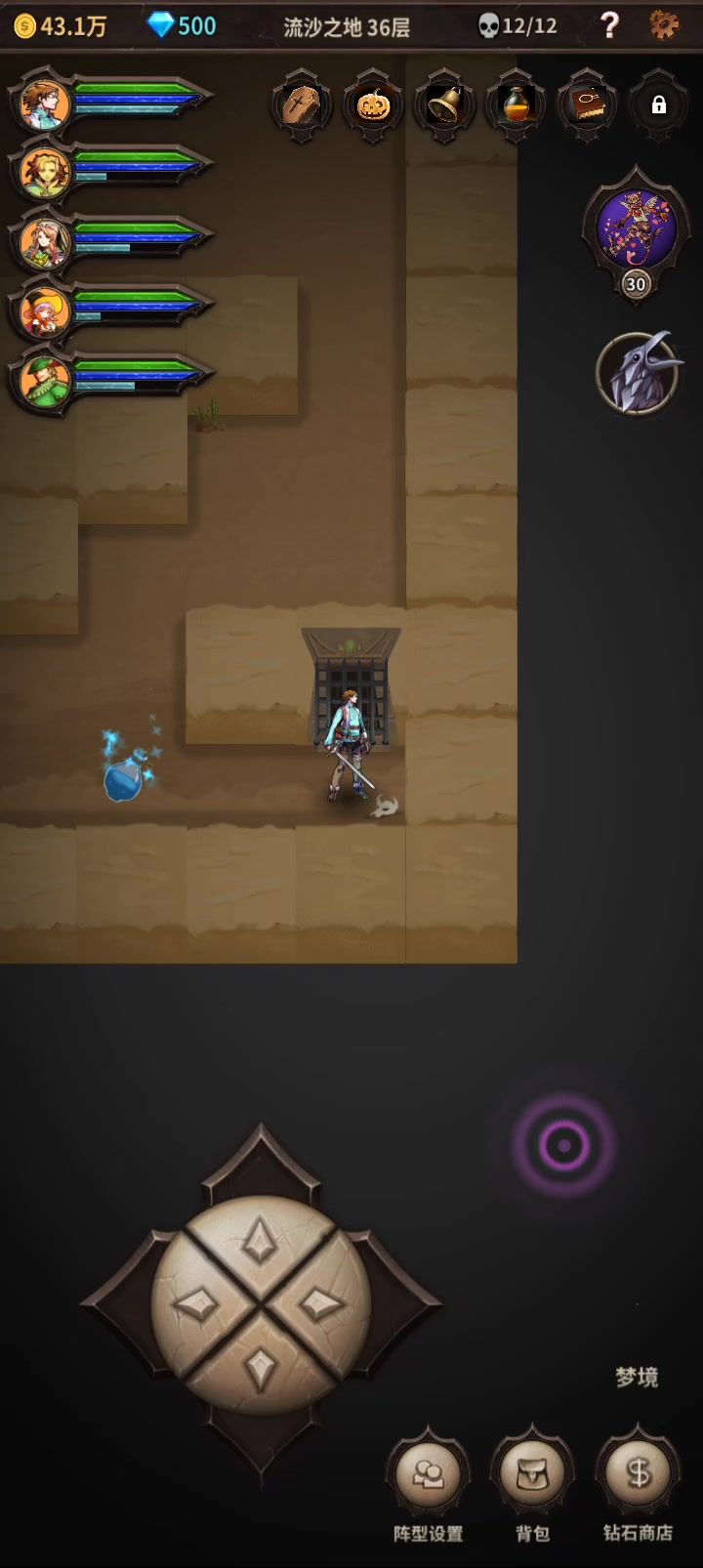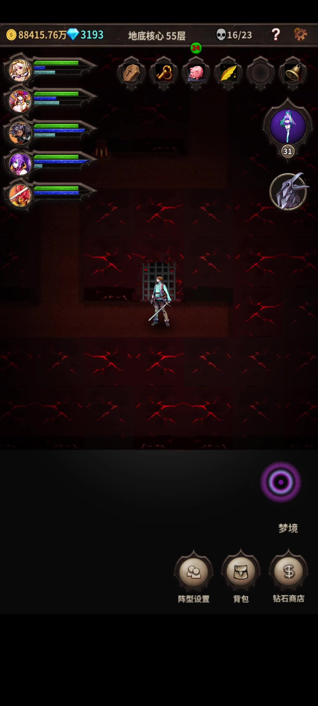 此游戏有两大护肝bug必须学会卡 替身护符 出处:前期牧师那一层有送或者商店里花20钻购买 ?号祭坛有机率刷出 作用:复活 bug:英雄全阵亡后带有替身主角身上会出现金色光圈在光圈存在的时间内切换至后台直接大退游戏。再登陆游戏全英雄复活且替身护符依然存在 注:据说最新版已修复此bug,可以在百度搜索1.07/1.08 版的安装包,新版的只添加了未成年人系统,内容玩法都一样 玲铛 出处:通过20层后