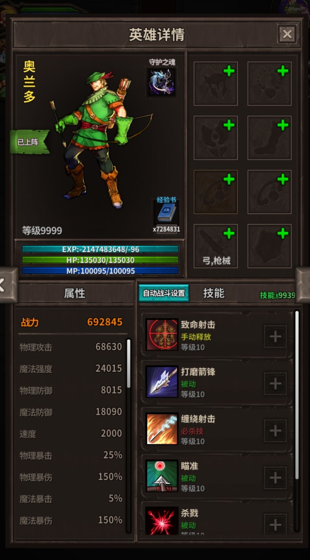 个人思路谨供参考 前期 王女优先技能等级 次速度 赏金主动技能 次速度 有专属最好 后面三个群伤英雄满暴击 缺什么补什么 狂战需要一条命中词条 至于守护 我为了省事是4雷鸟 精灵 压制这个必须其他看个人