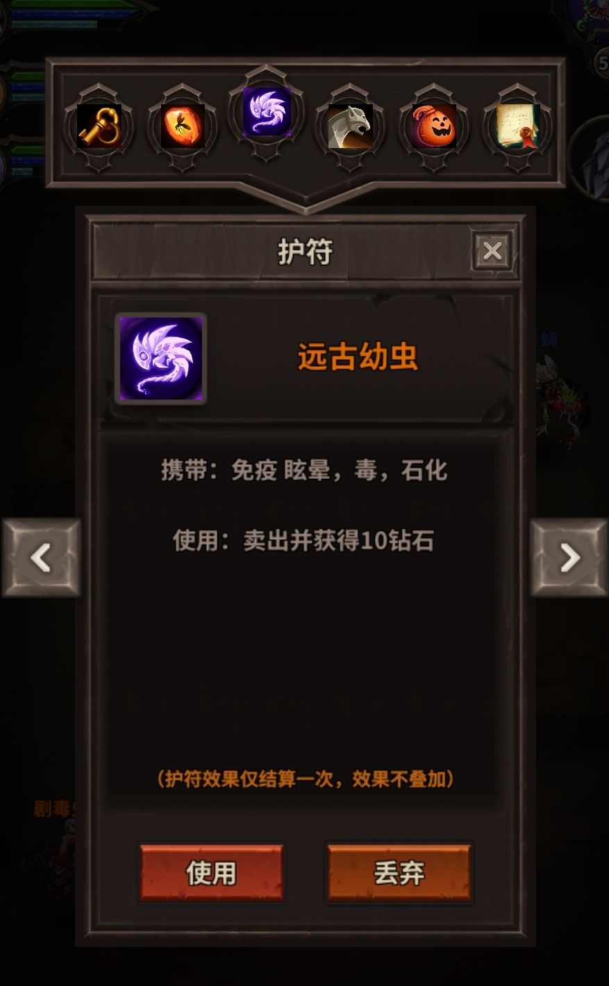 梦境150层以后都是靠抢先手,龙血作用已经不明显了,这时候可以把护符换成带控制的,猎豹牛角短笛坚果肥皂有备份的带个金羽毛没备份的带个墓。