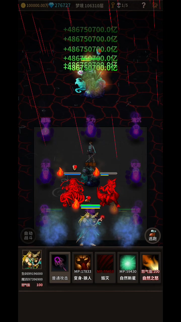 ①周目挑战10w层梦境,半血狂战第一回合打出了boss狂暴,狂战被反死,然后狂暴boss用了类似主角光速斩的技能,秒杀了王女。然后就开始吸血,持续了大概90秒,我是看了十多秒才开始录屏的!恐怖如斯!这应该有几千次攻击吧?