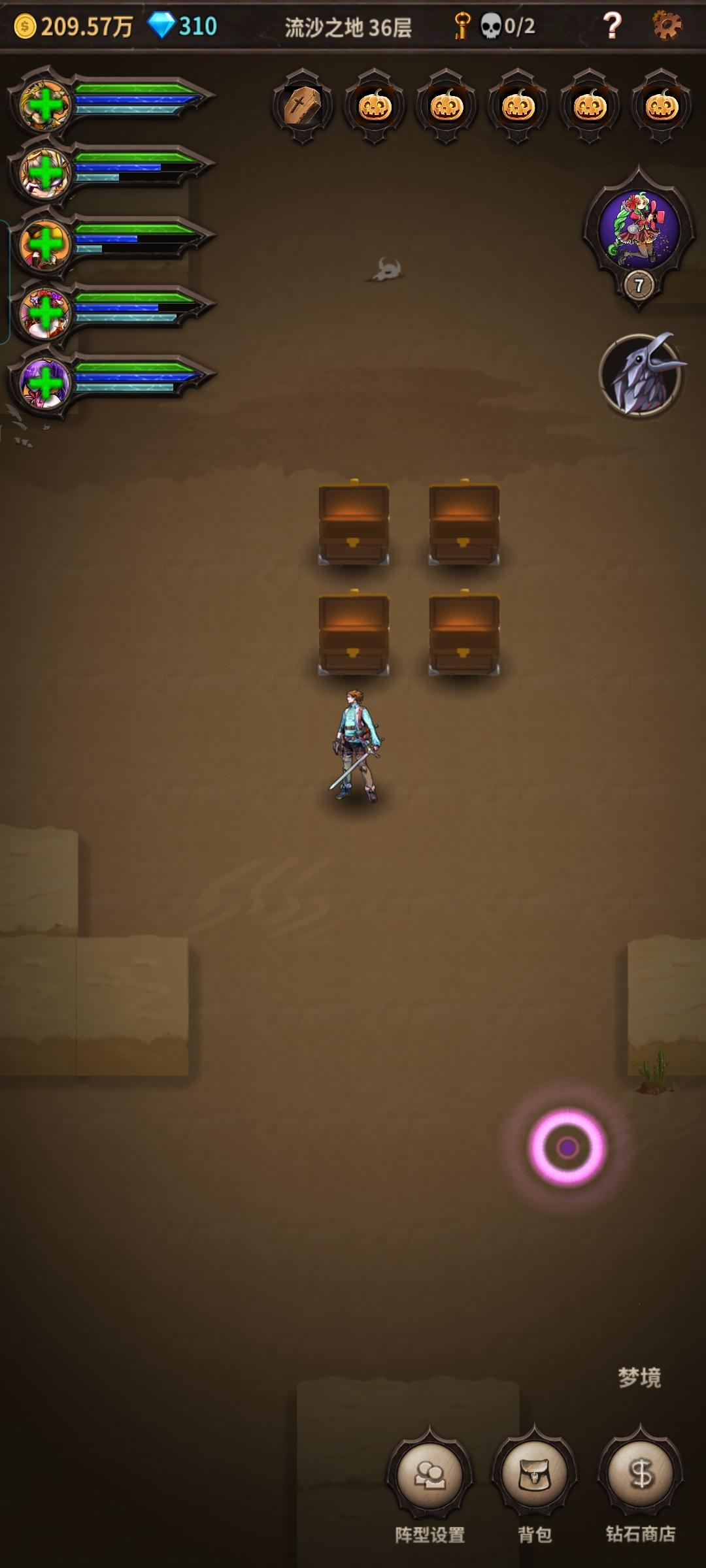 精灵:活力,压制,有条件带上储值和学识 护符:金钥匙,没有活力的精灵的话带魔法瓶,牛角,坚果,短笛,配置不够的话带上墓碑防暴毙 推荐在梦境刷到满速装备再用脚本刷周目,不然可能会遇到某些意外情况暴毙,非常影响游戏体验。
