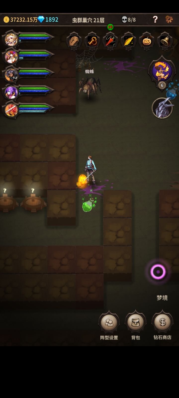 #魔窟无尽的地下城 1.刚玩的话,一周目,稍微难点的就25/30/35左右那些boss,如果打不过,就先卡一下,买南瓜,攻击力药水(可以给狂战或者赏金),法强药水(可以给火女或者德鲁伊),一周目先买南瓜,药水,金币猪(金币猪一周目怎么买都不会亏,一周目之后再买会亏)和右上角物品格子为主(小退再进会刷新怪物,有金怪就去刷,会得砖石,宝箱变祭坛,或者祭坛变宝箱,有祭坛的话可以看看,没有想要的再次小退