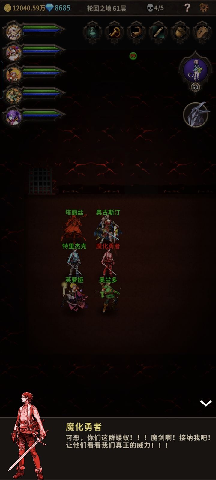 20周目全身红装(戒指除外)狂战残血1回合秒梦魇魔 ①周目全身橙装狂战残血照样1回合秒梦魇魔(没上王女,被先手秒杀了一次) 可以看出,后期狂战照样不弱。只是需要控血。