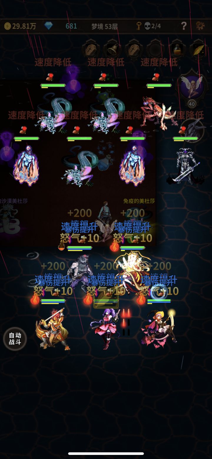 中期打boss一般都是狂战/火女清杂兵,盗贼/王女控boss,然后就是赏金一直填弹然后开大秒,后期装备起来了就是大德一个技能连boss带小怪一起秒(差不多得1000层左右)