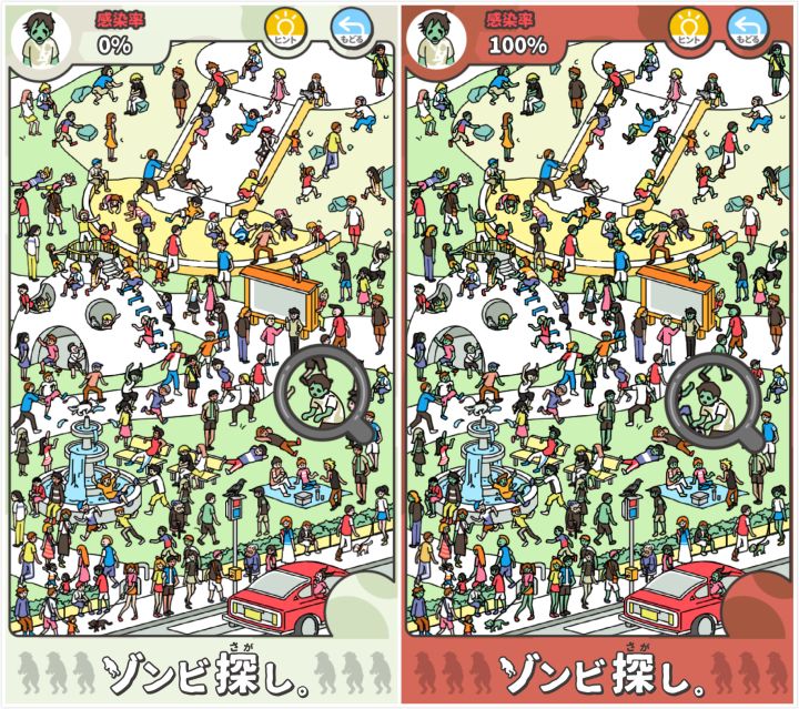 《寻找僵尸》是由知名休闲游戏厂商G.Gear带来的一款新作,如果你玩过《隐藏之人》,那应该也能轻松上手,不过这一次隐藏的不是人类,而是僵尸。你要前往水族馆、学校、医院、公园等数十个场所,在人山人海中抓出僵尸病毒。病毒会随着时间的推移感染越来也多的人,一旦达到了100%,游戏只能重新开始,你能花多久拯救人类?擦亮眼睛,来试试就知道了!游戏可在和下载