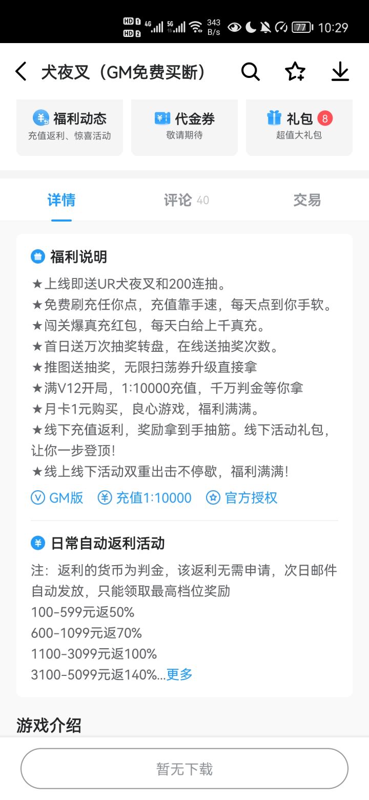 民间有内鬼已经把关服前的服务端拿出来卖了,游戏内容我也进行了试玩,是最新的BT服,价格是35000,并且还有演示,私服那会确实是能玩,只可惜后面我换手机,再也找不回安装包了,这游戏以后大概率也是卖,至于官方正式开服?估计有点难……也服了你们这些人,开服都在骂,关服了一群人天天想玩