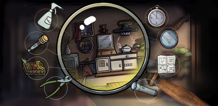 第一关:点一下地板中间的钓竿,得到一条鱼。出门,点击左上角的鸟窝,喂鸟吃鱼,得到钥匙。回到房间对电视下面的柜子使用钥匙,获得望远镜的镜头。出门,把镜头装在望远镜上,看到如图画面。记住图标顺序,回到房间。点击电视左边的照片墙。(树、鸟、柜子、人)得到螺丝刀。点击电视右边的圆形物体,使用螺丝刀打开。按图中右边部位的样子点击圆形物体中间的按钮。获得一卷钞票。出门选择望远镜右边的东西,