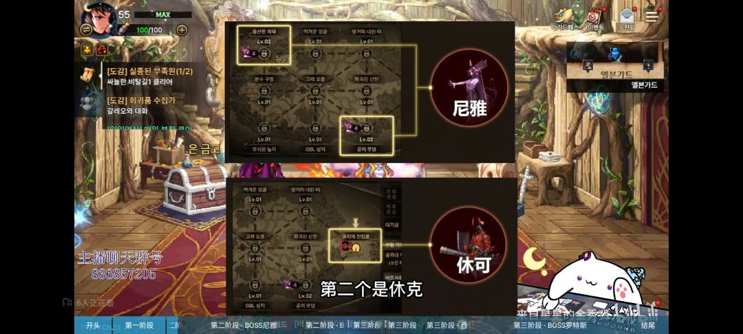 首先,咱们先看二阶段地图 是这个样子,最左最右都打完了才能进中间九个图 尼雅:她走过的房间,里面的boss会提升一个等级,boss一共三个等级 1:尼雅停留一个房间30秒 2:移动下一个房间是25秒 3:击杀后复活时间是55秒 注意去击杀她(如果不在乎boss等级那你可以不用管了) boss进化等级图: 休可:俗称人马,打完最左最右两个图后,他会在这图刷出来,如果不击杀,他会把你们开的电塔全拆了,