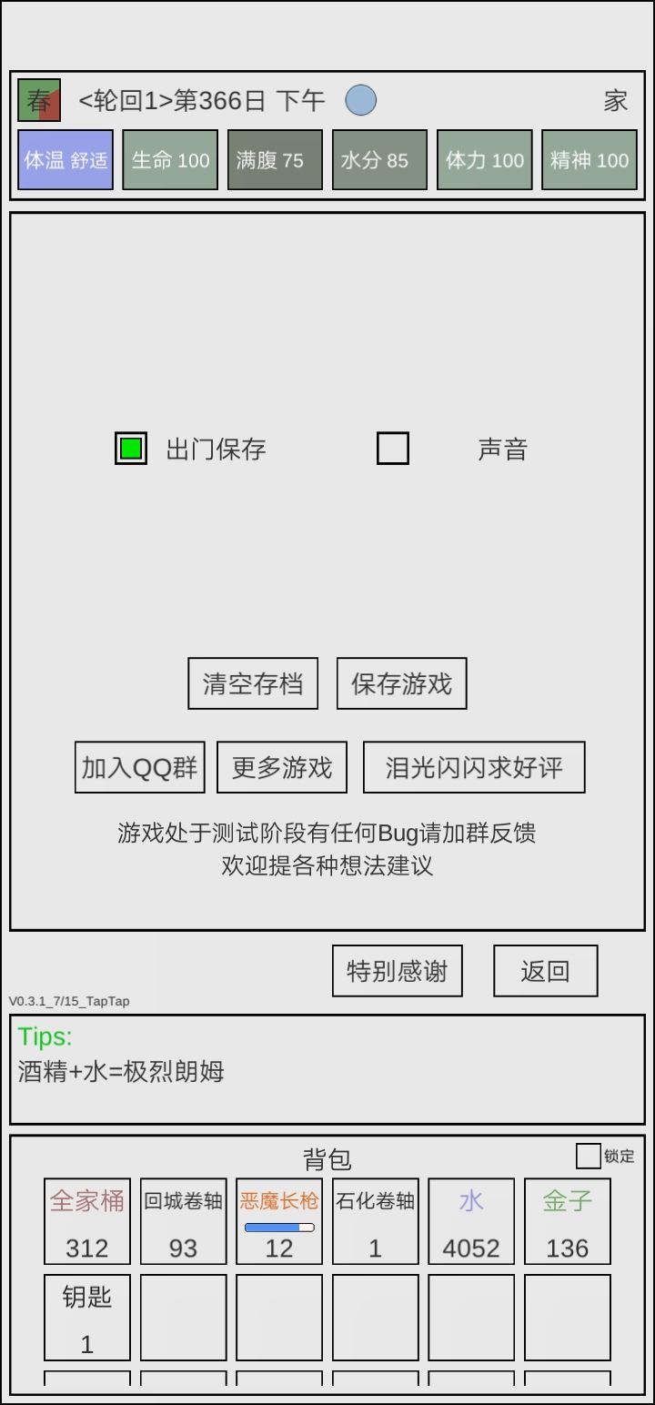 《魔塔冒险者》安卓版已经更新到 V2.0 以下为更新内容 V2.0 1、添加多存档功能 2、营地添加七日登陆活动 3、营地"苦逼开发者"任务调整 4、优化集市操作数量 5、优化学院购买技能书操作数量 6、优化使用技能书操作数量 7、修正转生天赋技能"幸运儿"加成不正确的bug 如发现什么问题或者有什么好的想法欢迎在下方留言 同时欢迎尝试我的其他游戏