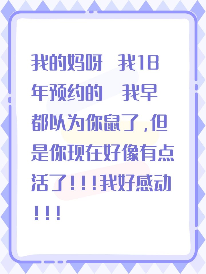 我的妈呀 我18年预约的 我早都以为你鼠了,但是你现在好像有点活了!!!我好感动!!!