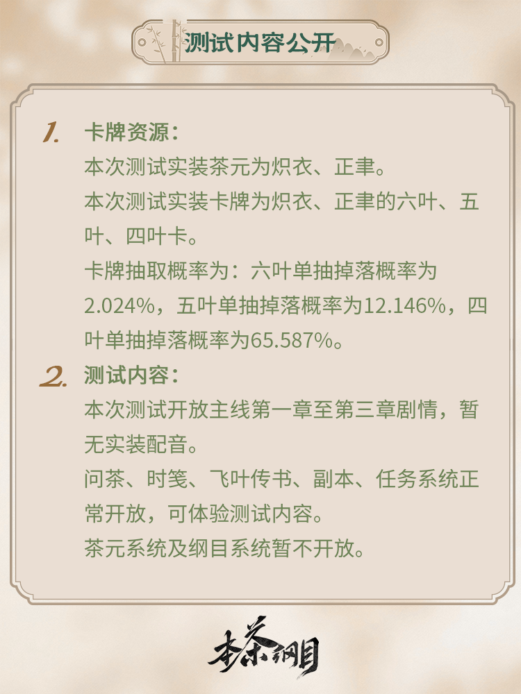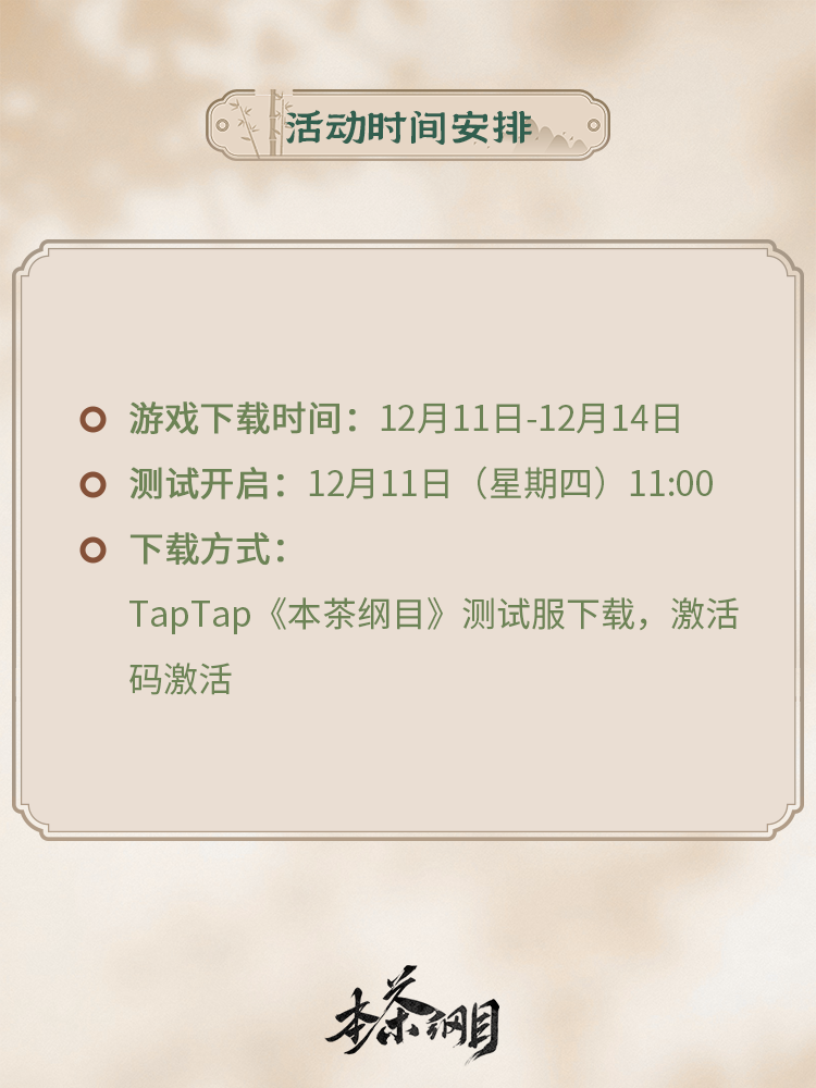 雪霜自兹始,草木当更新——《本茶纲目》,更新!亲爱的著灵者,《本茶纲目》回来啦!从今天开始《本茶纲目》手游的相关内容,将同步在各平台的官方媒体账号进行更新发布。更丰富的内容,更多游戏速报,都会一一报道。新本茶——新的世界,新的故事,都能体验!新官网——还在持续建设中,现已开启预约!沉浮映人心的,是茶;慢慢在做的,是《本茶纲目》;一直没变的,是小编。新的测试活动即将开启,请著灵者多关注