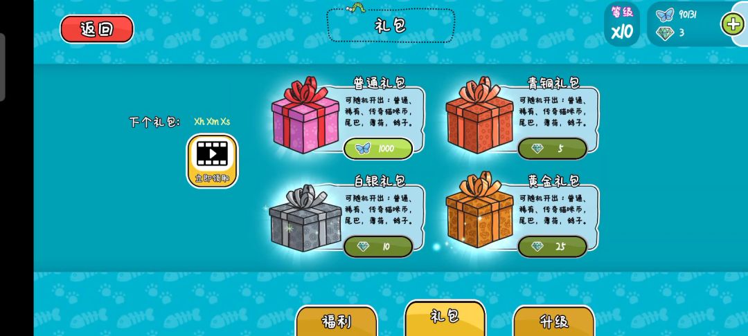 每日奖励的大礼包 没啥意义记录一下 开了很多传奇猫咪币
