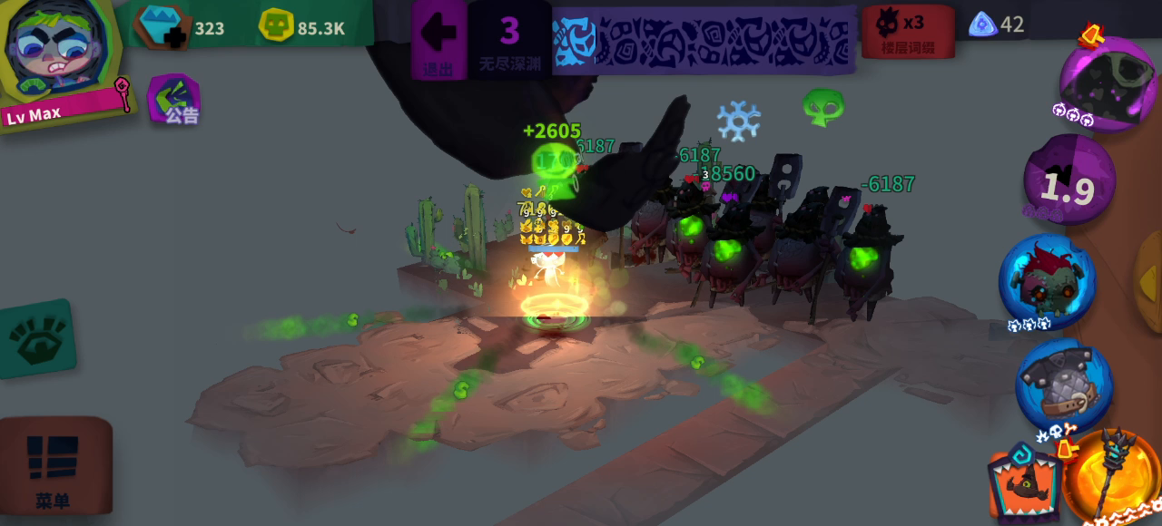 流程很简单先用提线木偶手帐一直刷,刷到提线站不住改成猪帐继续刷,不卡关不用操作。 1.注意点 看到金币怪或钻石怪的关提前换上提线,那样一次轻松刷三百多钻或几千块钱。因为远程提线攻击频率高。 2.注意点 宝宝的ai有点傻、但是boss更傻,在boss关的桥位置多来回折腾下,怪会一直追你然后宝宝无脑捅pi眼,一会就打过关了。 3注意点血量够不会秒就好,资源都升主武器因为宝宝等级和武器挂钩。 4注意点带