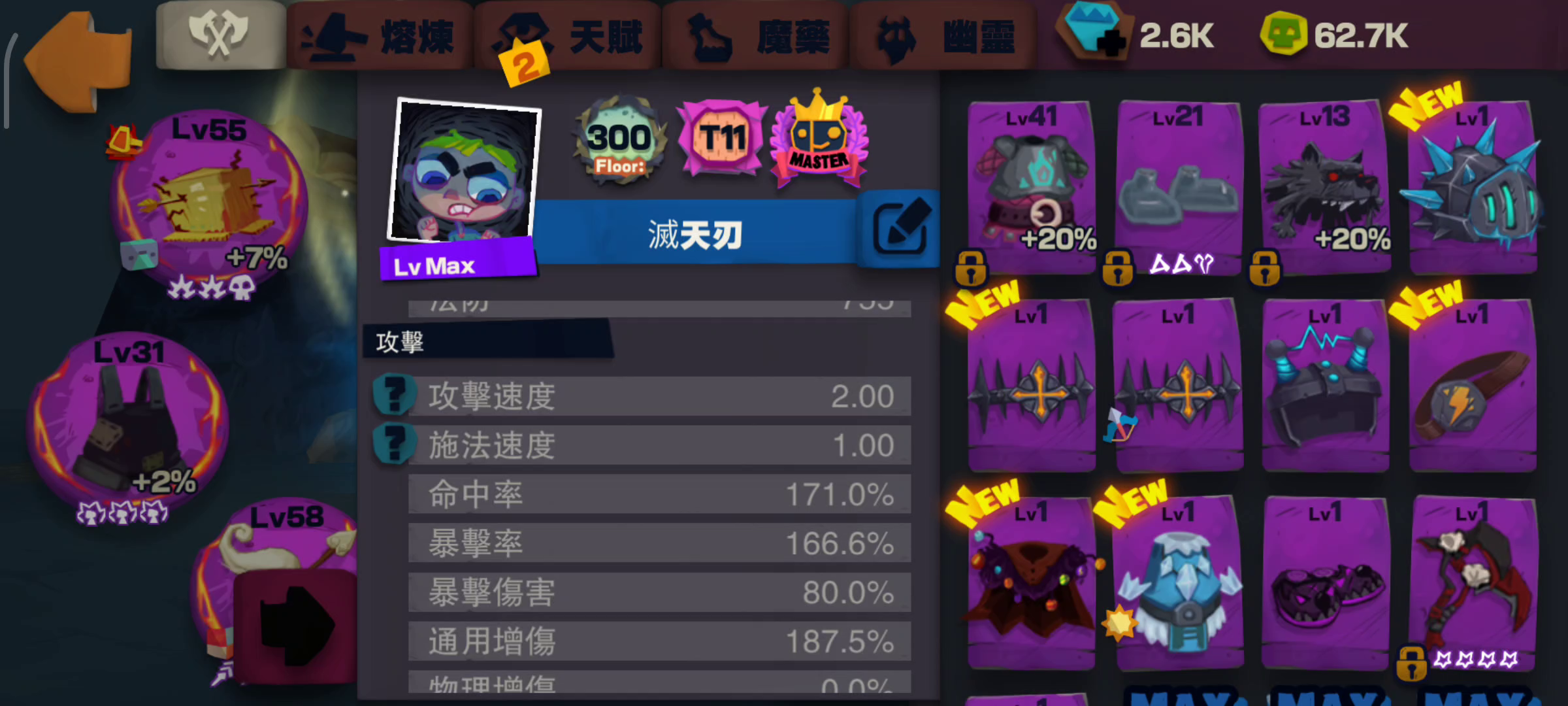 我元素球球上限还没洗,刺客部还没刷好,因为玩小号去呢,小号攻击比大号低一万,但是毒元素和刺客部比大号高级一些,齐全一些,所以也能15下boss就死,无敌盾一般我不用的。洗了金币词条打金币的时候带。