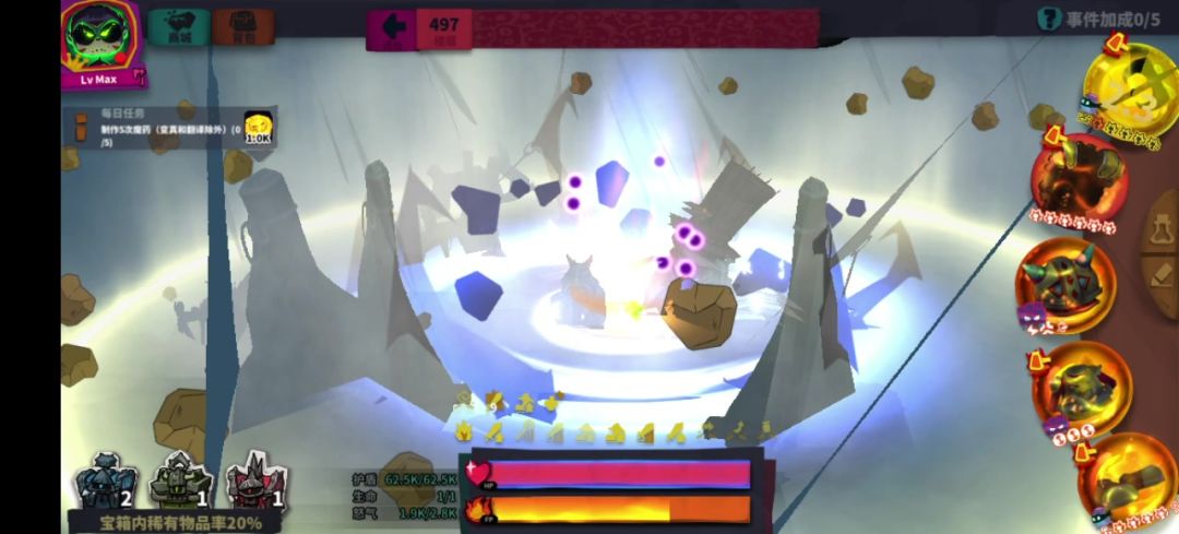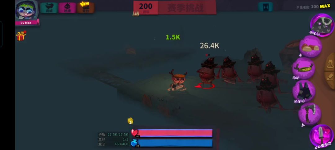 要不是有了这双三孔迷踪鞋,追猎就被我删了,花了那么多矿,伤害才这么点高,又特别特别特别脆皮。400-500层,两次十倍都被红圈炸死了,至今仍然在470层,实在是不想刷。