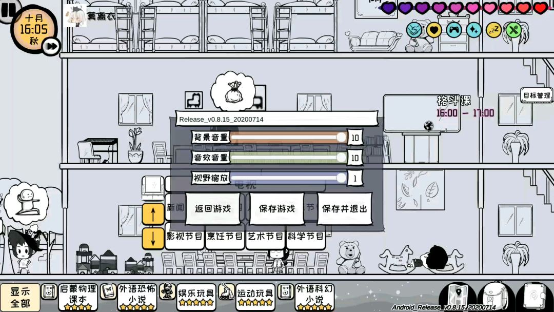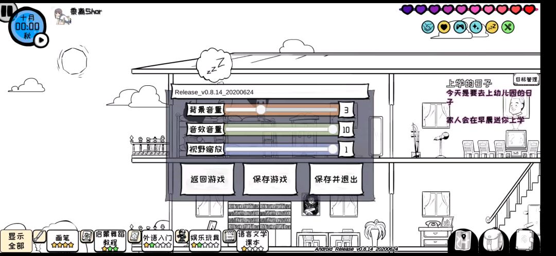 如果闪退这个bug很难改的话整个自动保存吧,也加个提示。 现在手动保存也没有提示,好几次我以为保存上了结果一打开还在九岁的那个秋天。(因为保存和闪退我九岁的10月已经过了四次了。)