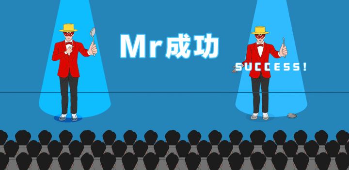 《Mr成功》来自《妈妈把我的游戏藏起来了》的开发商hap,和以往的作品比起来,游戏显得“正常”很多,玩家要做的是帮助演员成功完成各种魔术,获得台下关注的喝彩,比如大变活人、嘴吐国旗、身体浮空等等。演出失败后的尴尬场面也是游戏的笑点之一,你常常需要多次尝试,用划动、点击等操作使用道具,才能达成惊人的演出效果。视频来自Escape Game La Lala游戏可在和下载