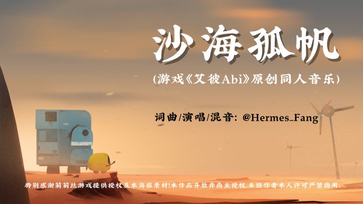 与音乐为伴,共赴四年之约!#我的小艾彼#独立游戏《艾彼(Abi)》原创同人音乐《沙海孤帆》正式上线!词曲/演唱/混音:@QQ音乐 :@哔哩哔哩弹幕网 :(更多音乐平台陆续上线中,敬请期待!)【鸣谢】特别感谢游戏制作方 及 提供授权及海报素材!感谢 提供社群支持。感谢在歌曲制作过程中,旧事年华(微博 )、北极吃冰(微博 )以及不甩(微博 )的慷慨协助。【版权声明】歌曲内容及专