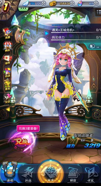 对于新手玩家来说,快速提高自己的等级才是乐趣的源头!等级越高战斗力也越强,但是等级怎么快速提升呢?我们来简单看看吧! 在我们进入天际冒险队的【基地】和【队伍】中都能看到自己的等级和战斗力,基地的右上方可以看到一个小小的三角,点开后看到各种需要做的任务,有通关任务、装备强化任务等等。也可以直接去关卡进行各种挑战,前期升级很快,基本上闯过一关等级就会升一级,随着等级提高,战斗力也会越来越高。所以最有