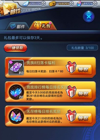 邮件系统作为《天际冒险队》的基础功能,不仅仅有着接收邮件的作用,还隐藏着大礼包哦!当邮件在闪着“New”的时候你可得去瞧瞧了,礼包里有各种任务奖励和意外奖励,邮件和礼包最多可以保存3天,这时礼包里的奖励可要记得及时领取哦!不然就要过期了,奖励很多的时候,可以使用“一键领取”,简单又方便!