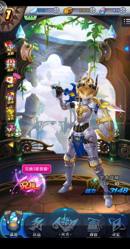 《天际冒险队》将开启全新的旅程,让我们来看看游戏的基本情况吧!当玩家经历了开帐号,新手引导,选择角色后,游戏就开始了,看我威风凛凛的战士!1.【基地】主界面中显示人物等级,战斗力值,充值,商店,活动,排名,公会等。每天还会有登入领奖,第一天金币50000,第二天彩晶100,第三天钻石寻宝卡3,等登陆第三十天赠送【钻石寻宝卡】30个,真是惊喜无限啊! 2.【队伍】可以切换角色,对当前装备进行强